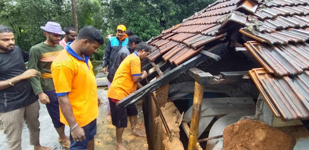 ಉಜಿರೆ: ಕಲ್ಮಂಜ ಗ್ರಾಮದ ಸತ್ಯನಾರಾಯಣ ಭಜನಾ ಮಂದಿರದ ಬಳಿ ನಿವಾಸಿ ಶ್ರೀಮತಿ ಸರೋಜಾ ರವರ ಮನೆಯ ಗೋಡೆಯು ನಿರಂತರವಾಗಿ ಸುರಿಯುತ್ತಿರುವ ಗಾಳಿ ಮಳೆಗೆ ಸಂಪೂರ್ಣ ಹಾನಿಯಾಗಿದ್ದು ಜು.16ರಂದು ಮನೆಯ ಹಿಂಬಾಗ ಕುಸಿತಕ್ಕೊಳಗಾಗಿತ್ತು.