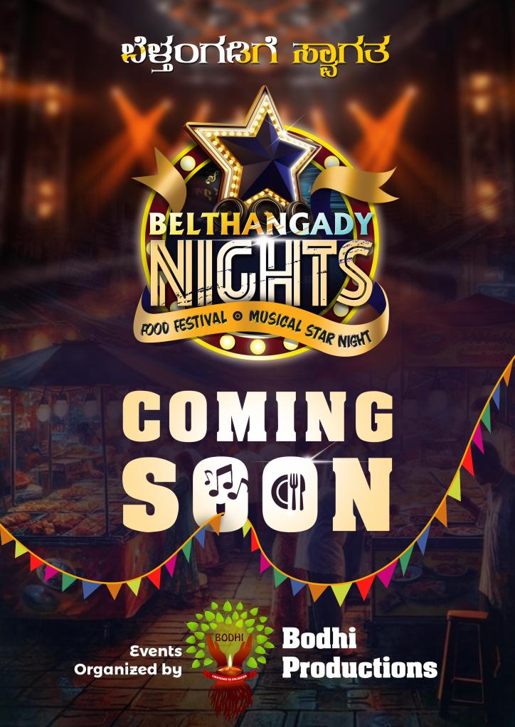 ಬೆಳ್ತಂಗಡಿ: ಬೆಳ್ತಂಗಡಿ ತಾಲೂಕಿನ ಜನತೆಗೆ ವಿಶೇಷ ತಿನಿಸುಗಳು ಮತ್ತು ಸಂಗೀತದ ರಸದೌತಣವನ್ನು ಒಟ್ಟೊಟ್ಟಿಗೆ ಉಣಬಡಿಸಲು ಸಿದ್ದವಾಗಿದೆ ಬೋಧಿ ಪ್ರೊಡಕ್ಷಣ್ಸ್. ಇತ್ತೀಚೆಗೆ ದಸ್ಕತ್ ಚಿತ್ರದ ಮೂಲಕ ಯಶಸ್ಸನ್ನು ಕಂಡಿರುವು ಬೋಧಿ ಪ್ರೊಡಕ್ಷಣ್ಸ್ ಇದೀಗ ಬೆಳ್ತಂಗಡಿಯಲ್ಲಿ ಹೊಸ ಪ್ರಯತ್ನವೊಂದಕ್ಕೆ ಕೈ ಹಾಕಿದ್ದು ಬೆಳ್ತಂಗಡಿ ನೈಟ್ಸ್, ಫುಡ್ ಫೆಸ್ಟಿವಲ್ ಮತ್ತು ಮ್ಯೂಸಿಕಲ್ ನೈಟ್ ಕಾರ್ಯಕ್ರಮ ನಡೆಯಲಿದೆ ಎಂದು ತಿಳಿದುಬಂದಿದೆ. ಇದರ ಅಧಿಕೃತ ಸ್ಥಳ ಮತ್ತು ದಿನಾಂಕವನ್ನು ತಂಡವು ಇನ್ನಷ್ಟೇ ಘೋಷಿಸಬೇಕಿದೆ. ಈ ಹೊಸ ಪ್ರಯತ್ನವು ಬೆಳ್ತಂಗಡಿ ತಾಲೂಕಿನ ಖಾದ್ಯಪ್ರಿಯರಲ್ಲಿ ಮತ್ತು ಸಂಗೀತಪ್ರಿಯರಲ್ಲಿ ಸಾಕಷ್ಟು ಕುತೂಹಲವನ್ನು ಕೆರಳಿಸಿದೆ.