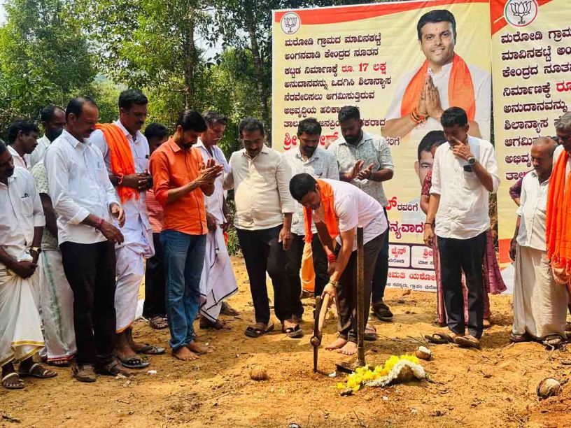 ಮರೋಡಿ: ಬೆಳ್ತಂಗಡಿ ಶಾಸಕ ಹರೀಶ್ ಪೂಂಜ ರವರು ಮರೋಡಿ ಗ್ರಾಮದ ಮಾವಿನಕಟ್ಟೆ ಎಂಬಲ್ಲಿ ರೂ. 17.00 ಲಕ್ಷ ವೆಚ್ಚದಲ್ಲಿ ನಿರ್ಮಾಣಗೊಳ್ಳಲಿರುವ ಅಂಗನವಾಡಿ ಕೇಂದ್ರದ ನೂತನ ಕಟ್ಟಡ ಕಾಮಗಾರಿಗೆ ಮಾ 07 ರಂದು ಶಿಲಾನ್ಯಾಸ ನೆರವೇರಿಸಿದರು.